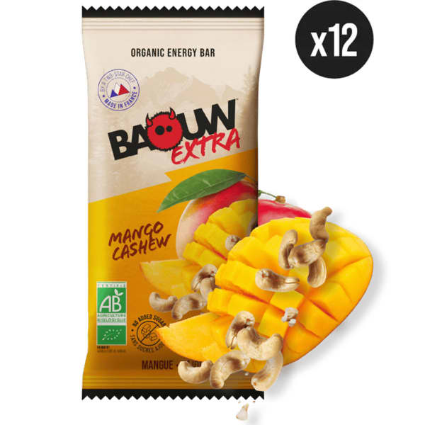 Per un'esperienza energetica e di gusto incomparabile, la confezione di barrette energetiche EXTRA ORGANIC MANGO - CAJOU X12 di Baouw è ideale, 100% biologica e prodotta in Francia .
